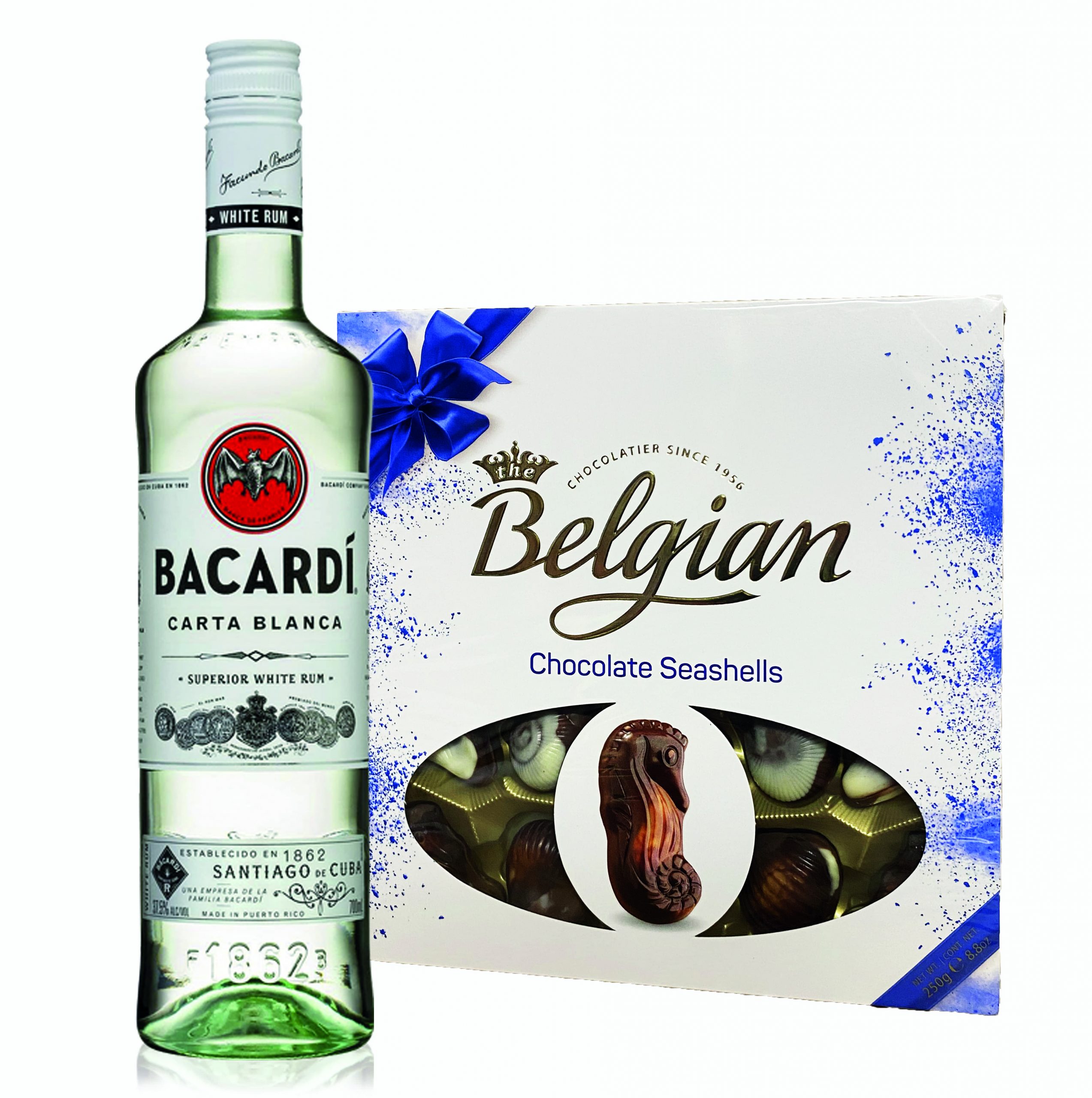 A single bottle of Bacardi Superior Rum Puerto Rico 700ml together with Belgian Bonbonniere 200g (7 oz) is presented in nice decoration. Please be aware that the flavor of chocolate could be changed according to our current stock.