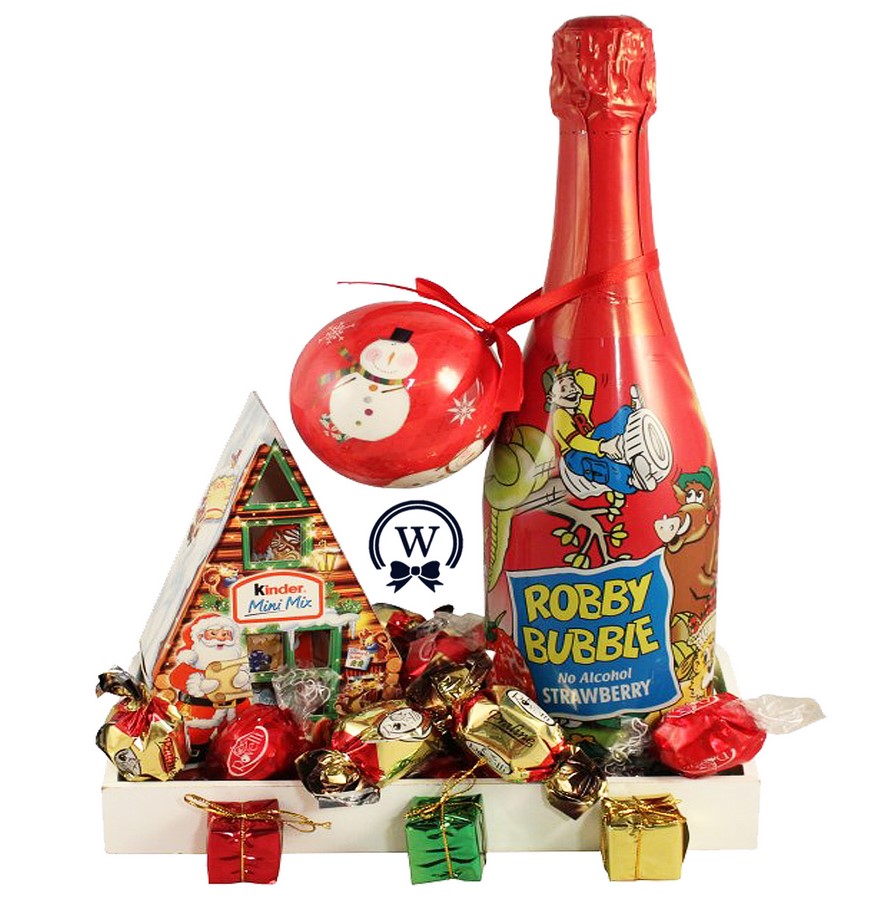 Together with Rovelli Bonbons and the Robby Bubbles Juice designed as Champagne, this keepsake basket is designed and delivered with lots of attention to the young recipient.