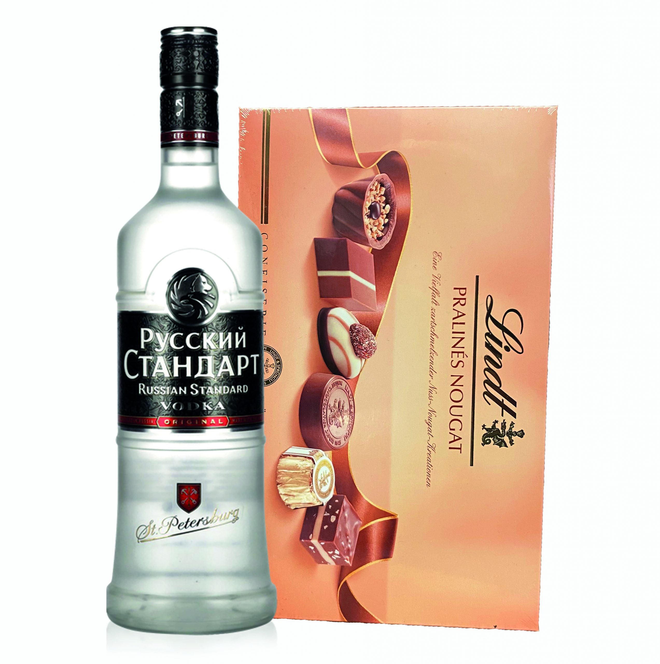 A single bottle of Russian Standard Vodka 700ml together with Lindt Pralines 150g (5.2 oz) is presented in nice decoration. Please be aware that the flavor of chocolate could be changed according to our current stock.