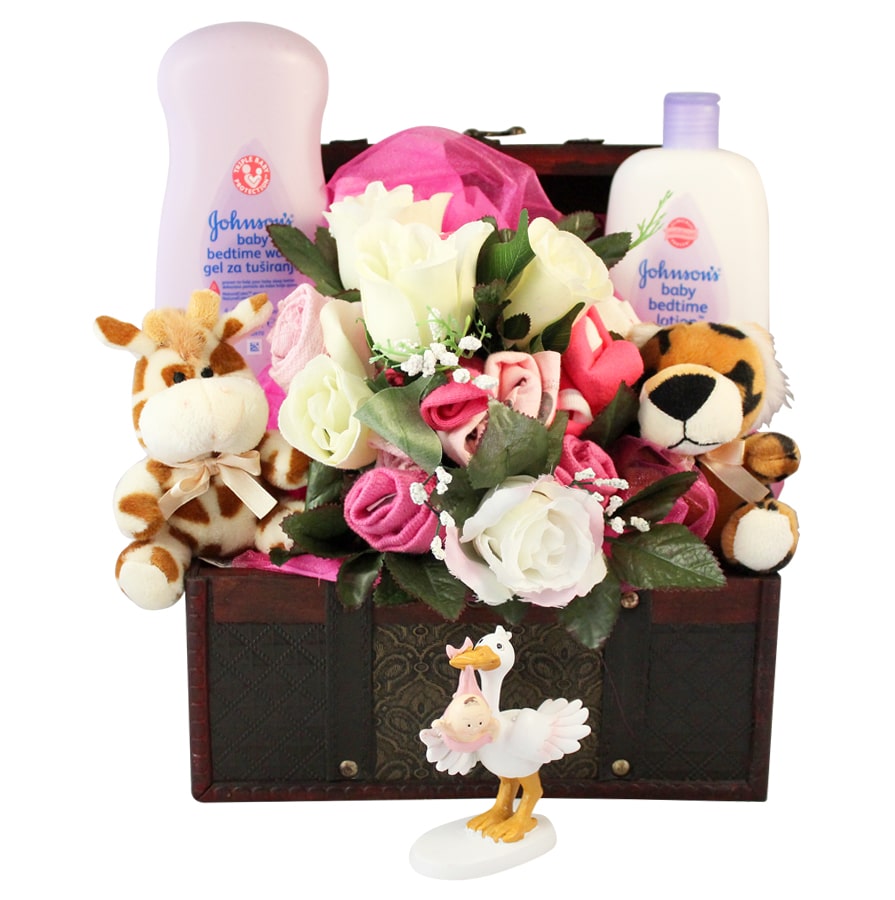 Walwater Gifts would like to present our delightful baby clothing arrangement. This is a very special gift that incorporates essential baby clothes. A fantastic new baby gift that is a great alternative to sending flowers.